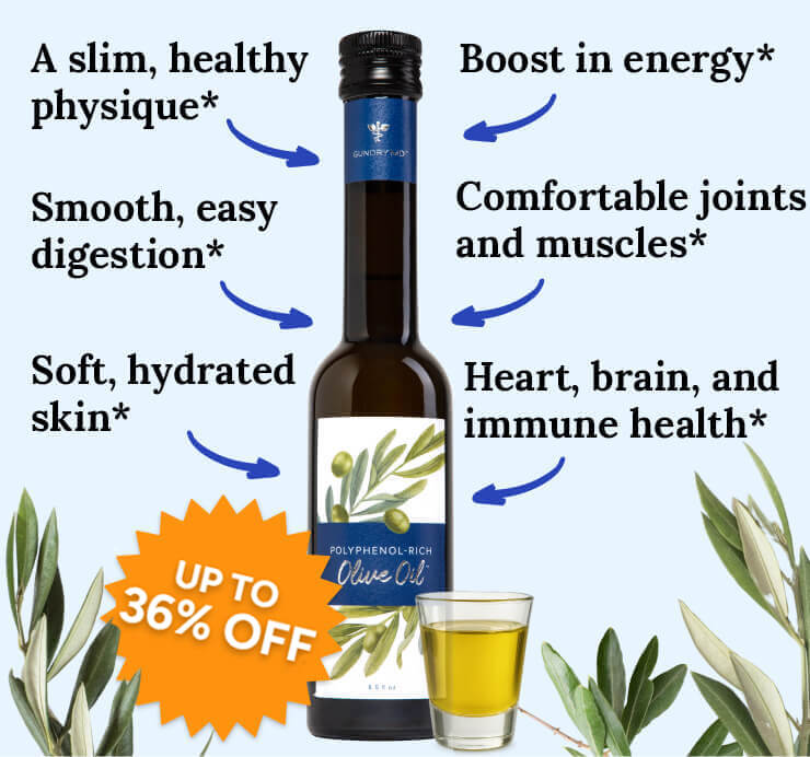 Thousands of people are now turning to Dr. Gundry’s Olive Oil to help address these issues by adding polyphenol-rich nutrition and healthy fats into their daily routine. Here are 5 reasons why people swear by Dr. Gundry’s famous olive oil… and why YOU need to try it too.